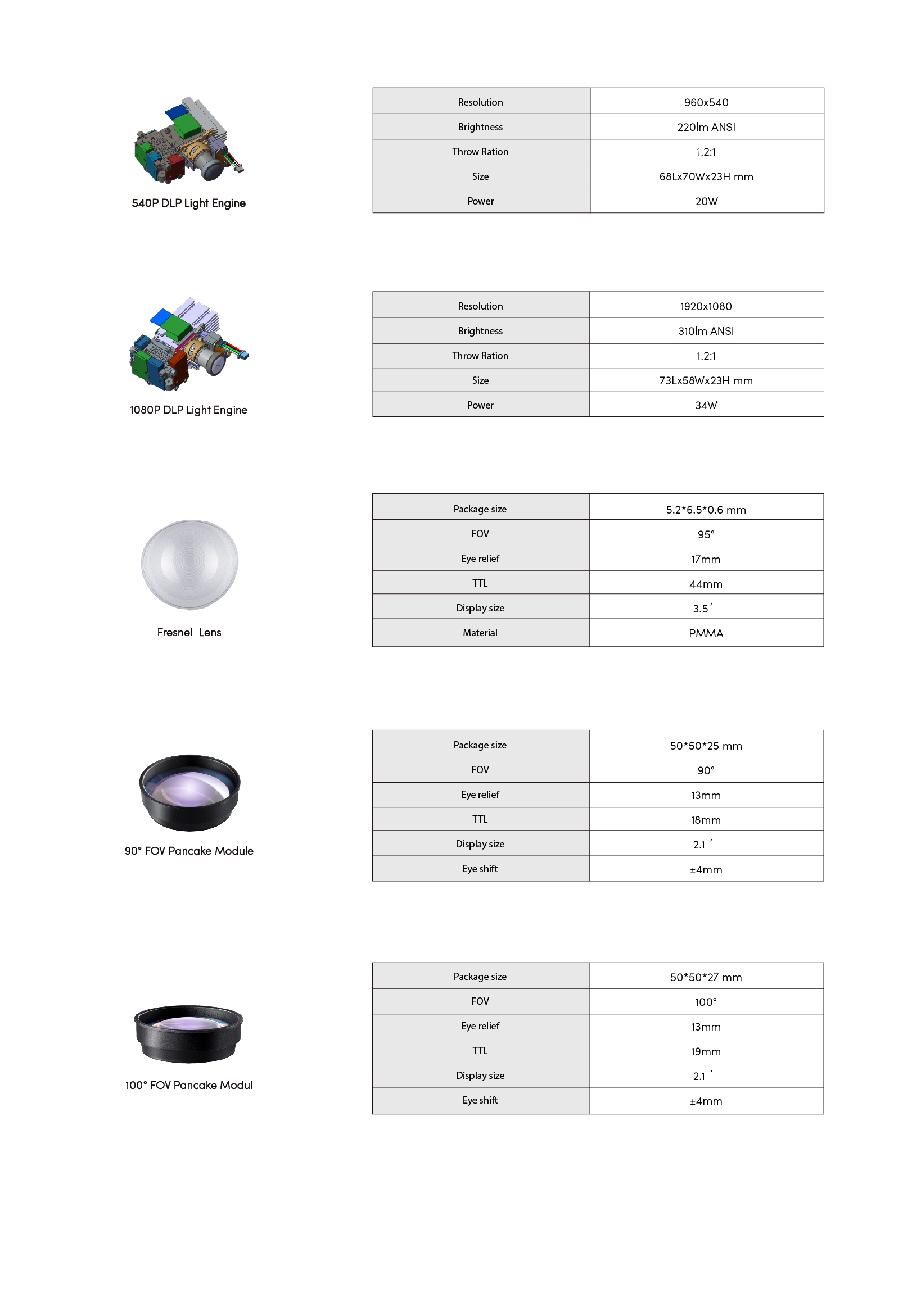 With strong optical development and resource integration capability, Goertek provides DLP Light Engine modules that can be applied into pico projection、touch projection and AR field. Independently developed by Goertek, the Fresnel lens has special-shaped trimming structure and high imaging quality, which is suitable for VR products. Besides, the PANCAKE lens module made by Goertek can be used for VR products characterized by miniaturization.